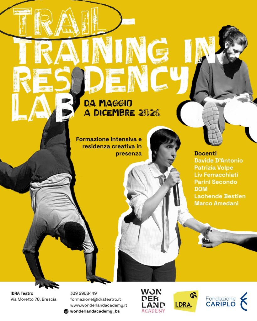 TRAIL – TRAining In residency Lab è organizzato in collaborazione con IDRA Teatro ed è parte del progetto “Abitare il Teatro”, sostenuto da Fondazione Cariplo – bando Valore per la Cultura.