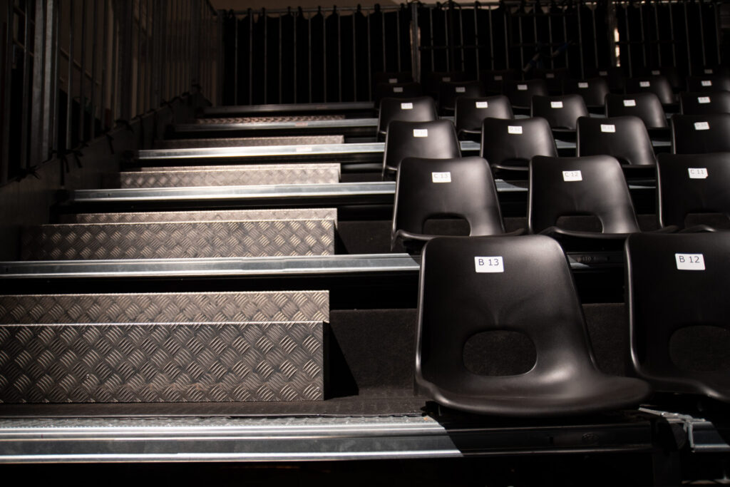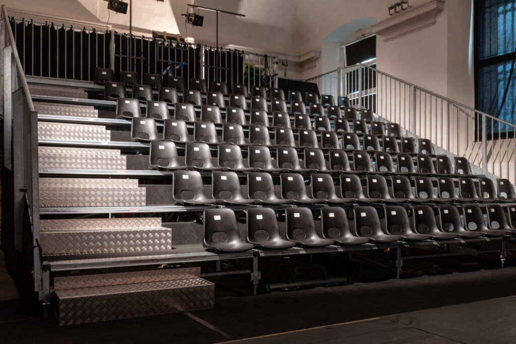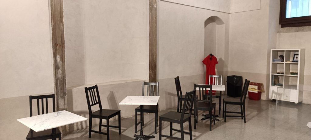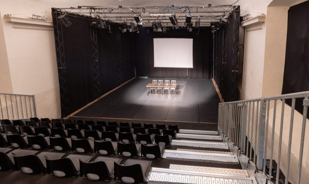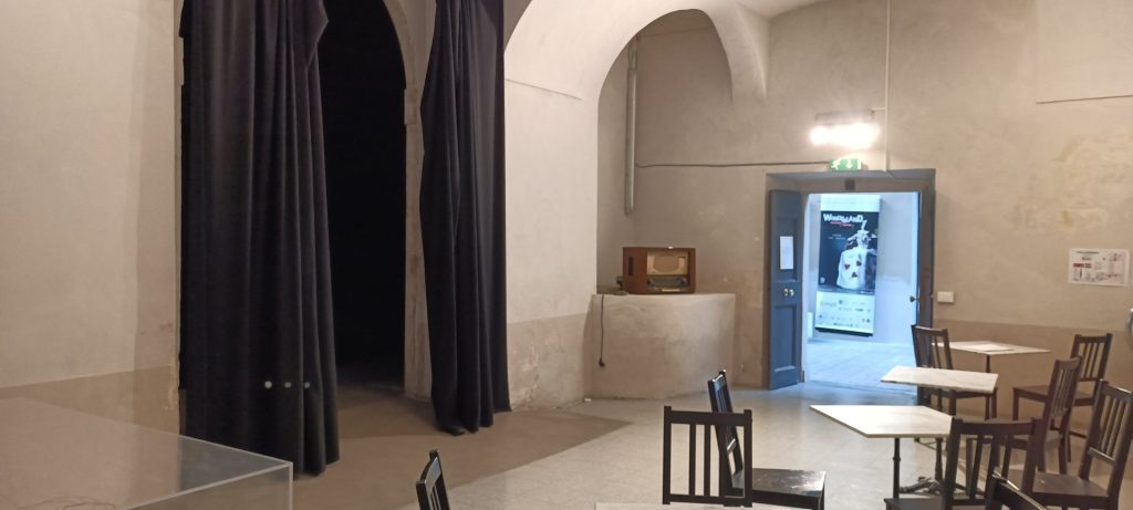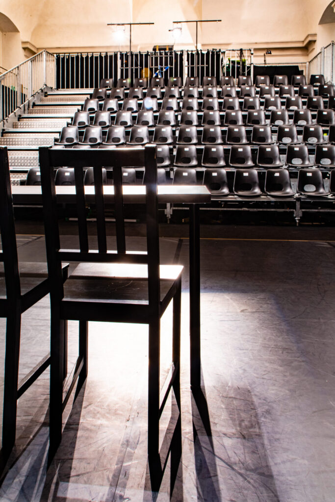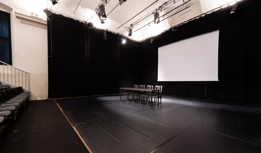 Nella sala delle udienze dell’ex Tribunale di Brescia, oggi è stato allestito un teatro di 90 posti, dove svolgiamo quotidianamente le nostre attività e i corsi di teatro.